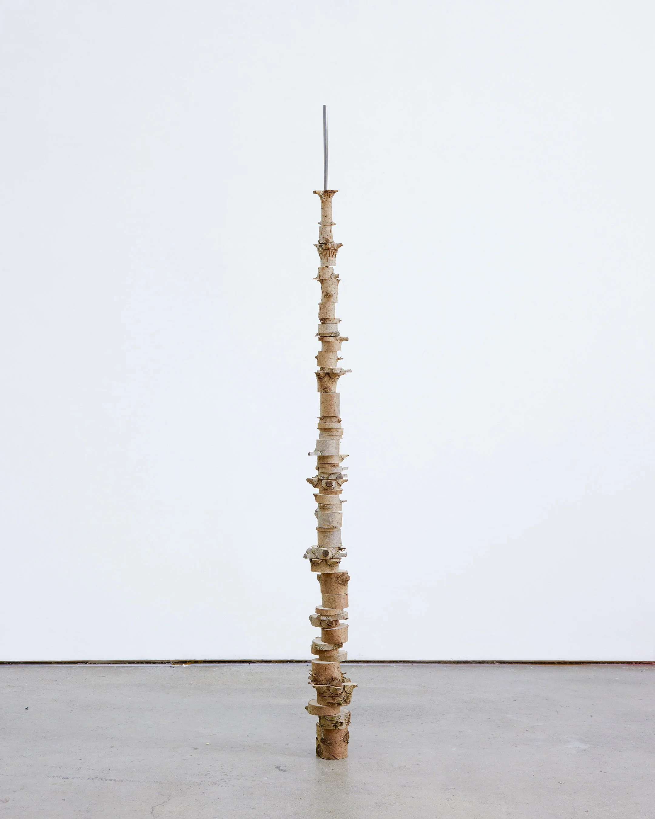 Slide 1 Slide 1 (current slide) Slide 2 Slide 2 (current slide) Slide 3 Slide 3 (current slide) We Tried, 2024Discarded Douglas Fir tree trunk from Christmas 2022, 10mm round steel tube.Dimensions = 150 x 15 x 15 cm